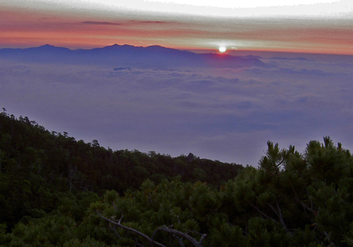 27日 1,330mの標高差の登り。苺平の手前で正体不明の動物に遭遇したが、黒うさぎらしい。予想以上に早く薬師岳小屋に着いたので、野呂川から北岳の前方に沸き上がる雲を見ながらビールを飲む。金曜日のため、最盛期としては小屋は混んでいる方ではなかった。