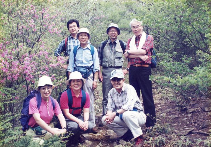 7 1994年5月28日 乾徳山(2016m) 山田(豊)、落合、遠藤、笹沢、田口(康)、鈴木(志)、鈴木(博)、久家 道満尾根にミツバツツジのトンネルが見事。岩場で誰も怖がらない様子には驚き。