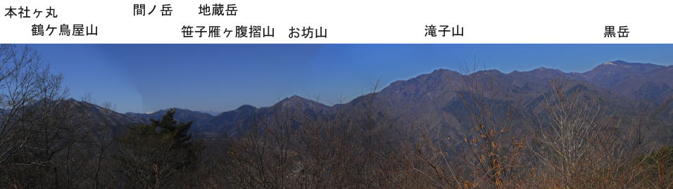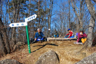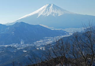 8日の残雪で林道は凍結している箇所がある。登山口でアイゼンを付ける。男坂を登るが、陽の当たる所は雪がない。高川山は人気のある山だが、広くない山頂に50人以上もいる。しかし、360度の大展望に時間の経つのを忘れる。混雑を避けて、禾生分岐の東のピークで昼食にするが、我々だけで独占できた。この先の斜面は北東側が切れ落ちていて、アイゼンの爪を食い込ませて慎重に下る。後は雪がちらほらある程度で、苦労することもなく下山し、田野倉駅に向かう。