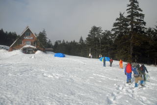 | 高見石小屋を起点としたスノーシュートレッキング。2日とも雨模様で展望ゼロ。しかし、深雪の中を歩くのもたまには楽しい。収容人数150名の高見石小屋への宿泊者は我々6名のみ。 | |||