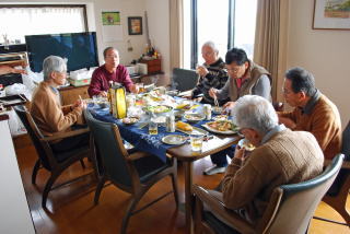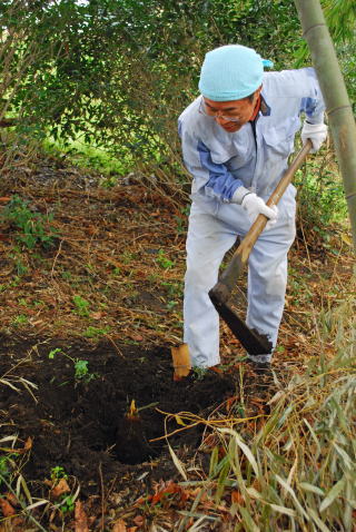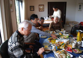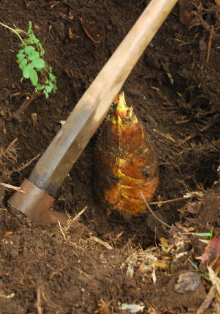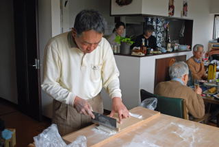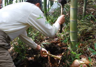 佐々木氏宅の裏山で筍掘り。その後、佐々木氏が打った蕎麦や奥様のお料理を戴きながら歓談。掘った筍を糠まで添えて戴いたが、柔らかくて美味しかったと後日誰もが言う。